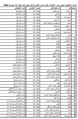 لیست داوطلبین نهمین دوره انتخابات هیات مدیره نظام پزشکی شهرستان نجف آباد